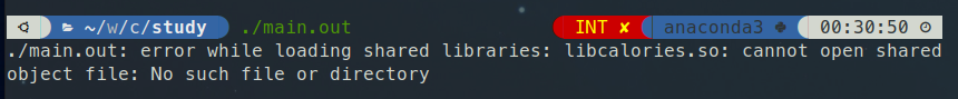 이 문제를 해결하려면 LD_LIBRARY_PATH 변수에 추가로 검색할 디렉토리를 지정하면 된다. 라이브러리 경로를 export 명령으로 LD_LIBRARY_PATH 환경 변수에 추가하면 main.out 프로그램은 libcalories.so 파일을 찾을 수 있다.