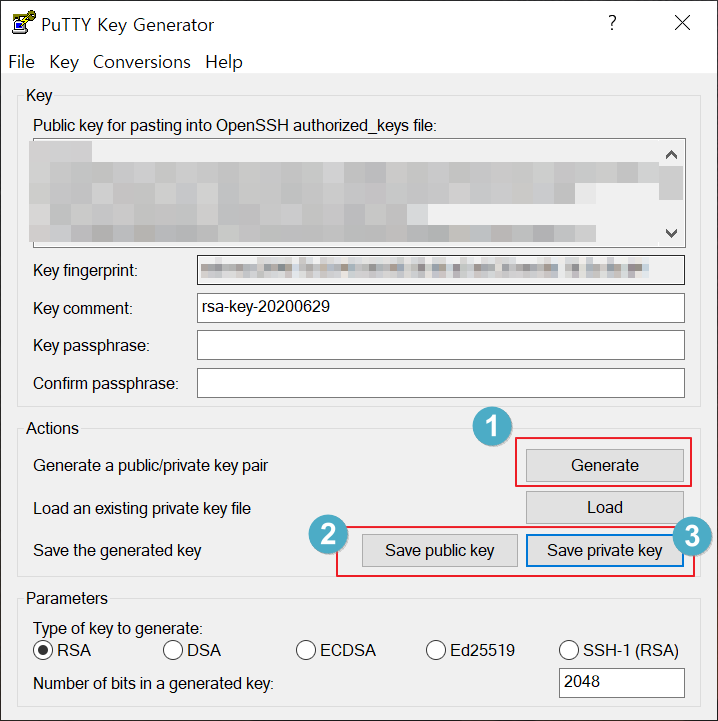 PUTTYGEN.exe를 실행해 Generate 버튼을 클릭하여 생성한다.