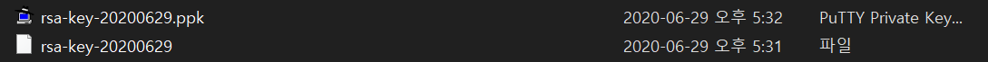 하지만, PuTTY Key Generator로 생성한 파일은 일정한 형태로 개행이 되어 있다. 그래서 위와 같이 형식을 맞춰줘야 한다. 맨 얖에 ssh-rsa를 입력하고 한 칸 띄운 뒤 키를 붙여넣고 여러 줄로 뒨 것을 한줄로 맞추어준다. 그리고 한 칸 띄운 뒤 코멘트로 사용할 rsa-key-20200631를 입력하면 된다.