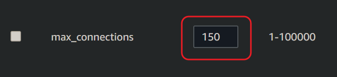 만약 프리터어 사용자라면 프리티어 사양으로는 약 60개의 커넥션만 가능해서 좀 더 넉넉히 150의 값으로 지정한다.