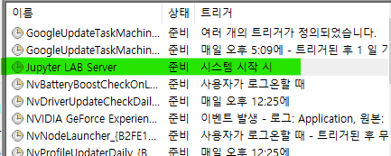 이렇게 등록해놓으면 jupyter LAB 서버가 컴퓨터 부팅/재부팅 할 때마다 실행된다.