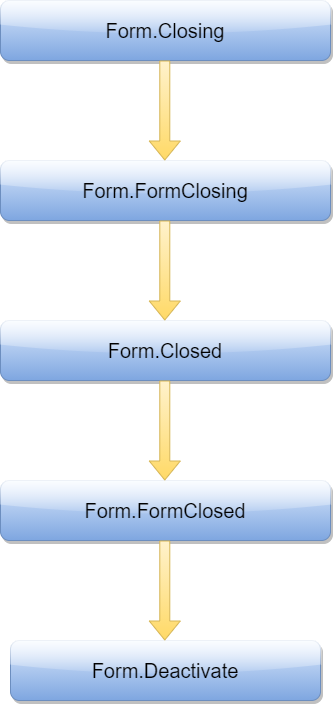Windows Forms 응용 프로그램이 닫히면 기본 폼의 종료 이벤트가 다음과 같은 순서로 발생한다.