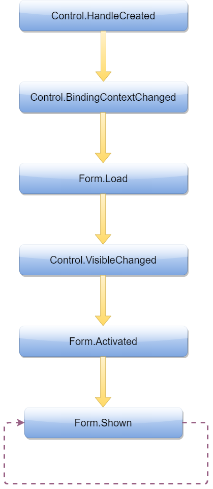 Windows Forms 응용 프로그램을 시작할 때 기본 폼의 시작 이벤트가 다음과 같은 순서로 발생한다.
