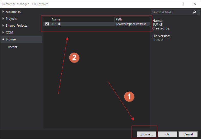 Step 2. 클라이언트도 파일 업로드 프로토콜을 구현하고 있는 FUP.dll을 필요로 한다. FUP.dll을 프로젝트에 추가한다.