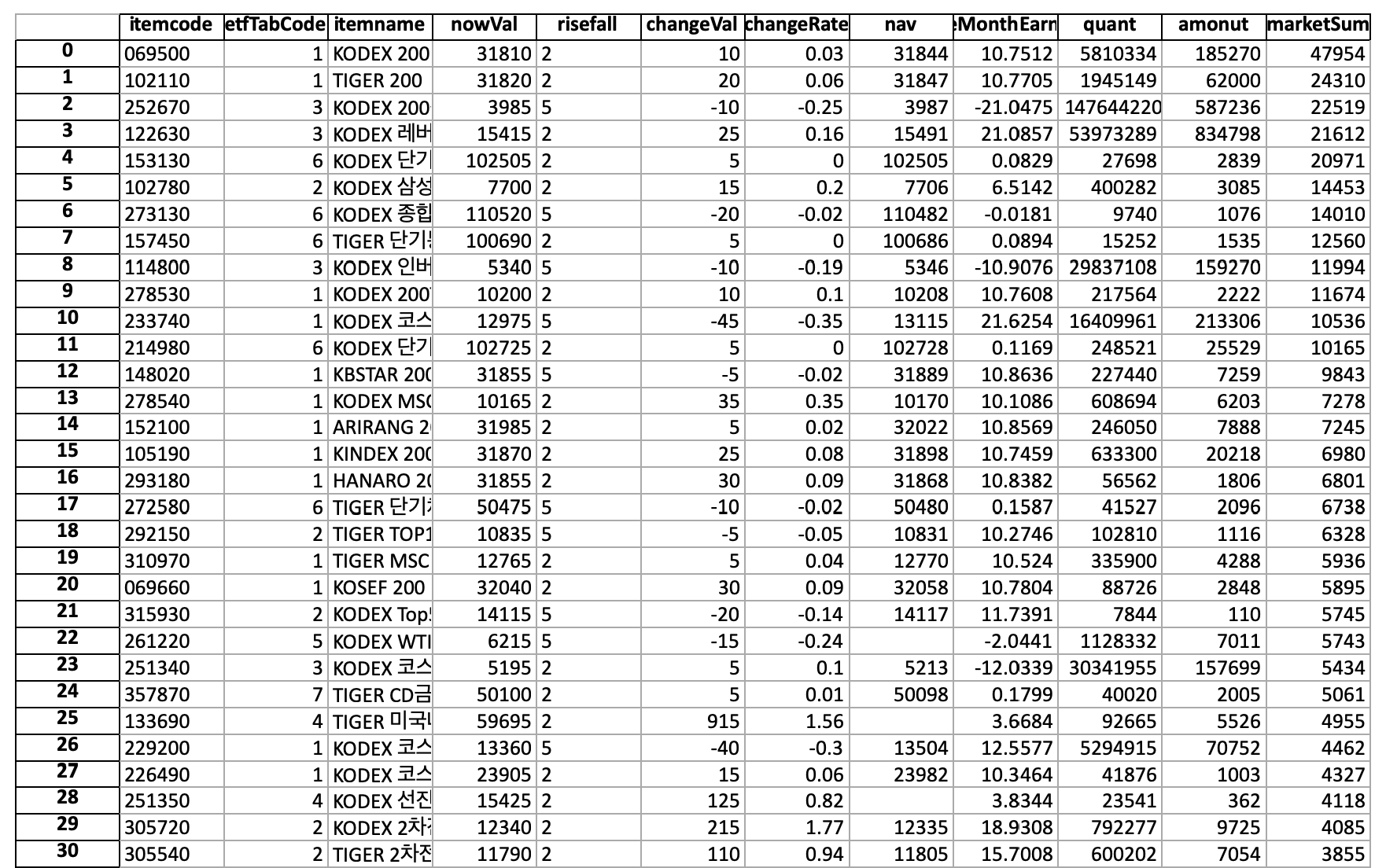 url = 'https://finance.naver.com/api/sise/etfItemList.nhn'