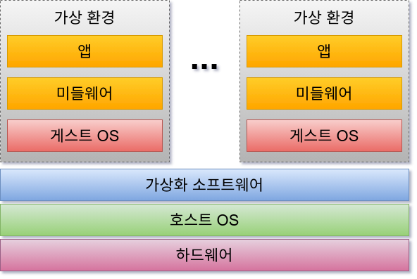 하지만 이 방식은 컨테이너와는 다르게 호스트 OS 상에서 다른 게스트 OS를 움직이고 있기 때문에 오버헤드가 커진다. 즉, 간편하게 도입할 수 있지만 사양이 낮은 컴퓨터의 경우 속도가 현저히 느려진다.
