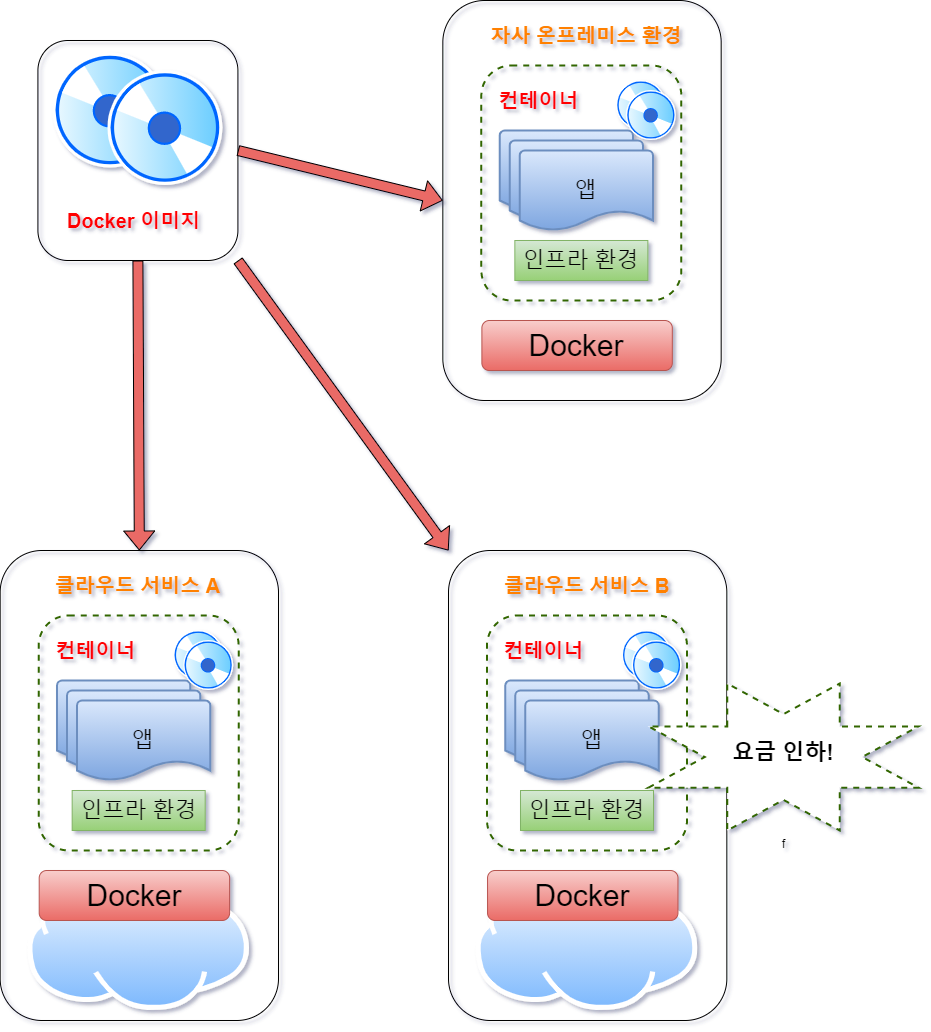 Docker 이미지만 있으면 어디서든지 움직인다.
