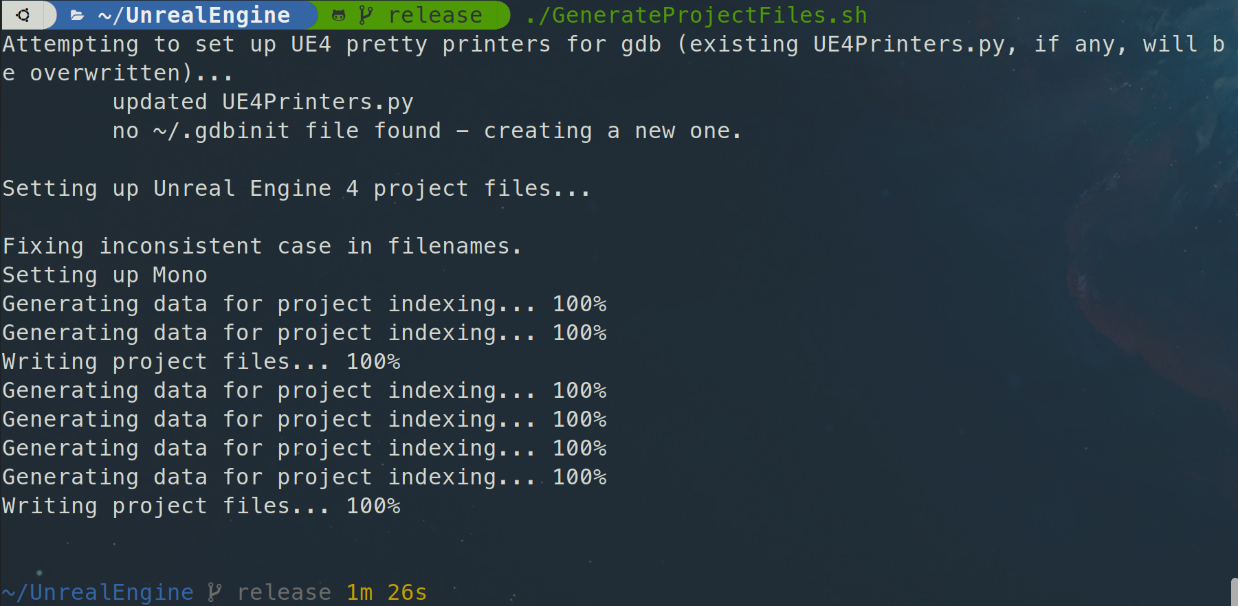 위의 명령이 모두 완료되면, 언리얼 엔진 프로젝트 파일을 생성해야 한다.