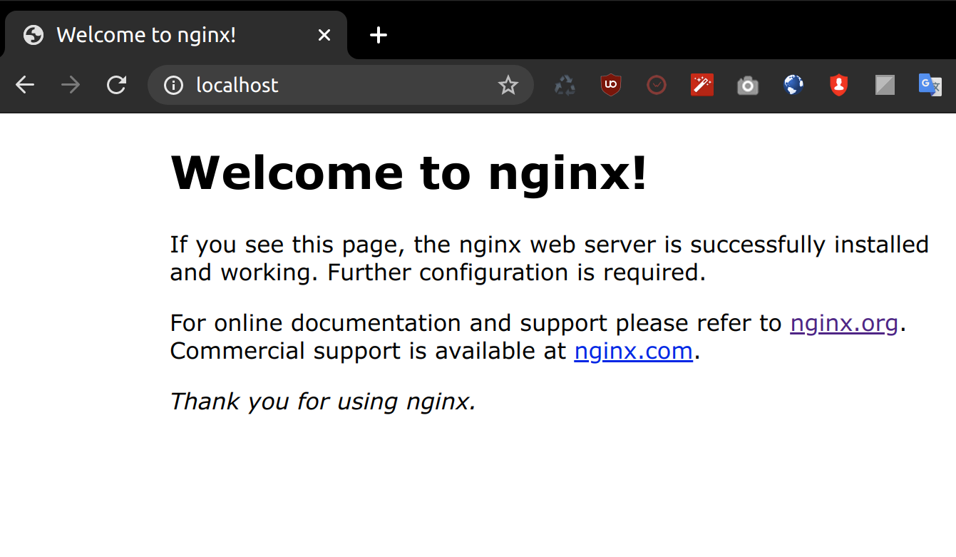 Nginx 서버의 탑 화면이 표시되면 웹 서버가 문제없이 작동하고 있다는 것을 확인할 수 있다.