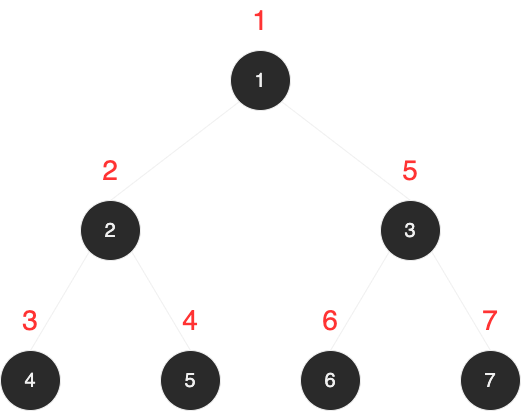 이진 트리를 어떻게 순회하는지 다음 그림으로 살펴보자.