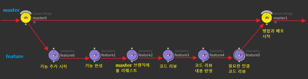 - 기능이 완성되면 master 브랜치에 풀 리퀘스트