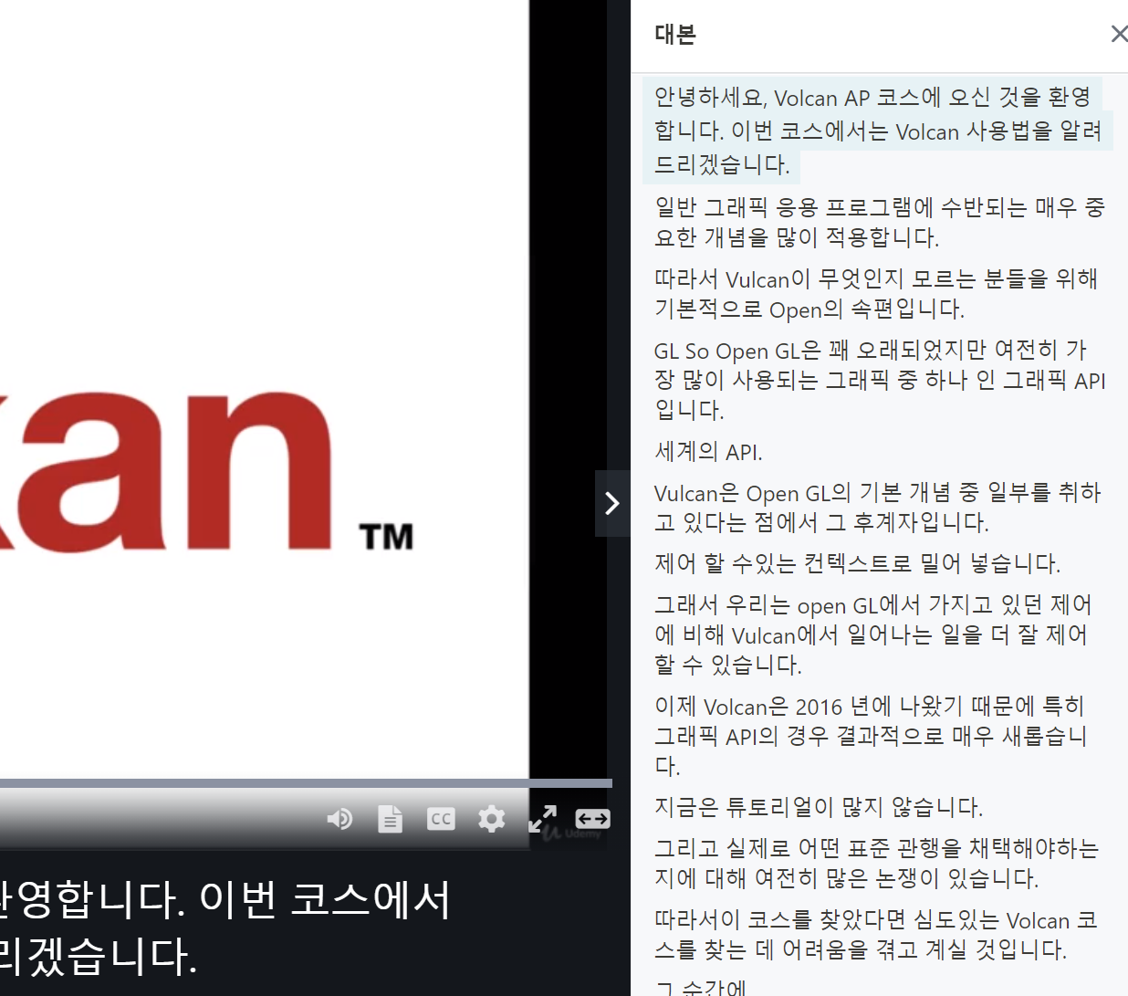 Udemy에 접속하여 강의를 시청한다. 그런데 그 강의가 영어로된 강의라면 조금 답답할 수 있다. 이럴 때 이래와 같은 방법으로 영어 자막을 한글 자막으로 실시간 번역하여 시청할 수 있다.