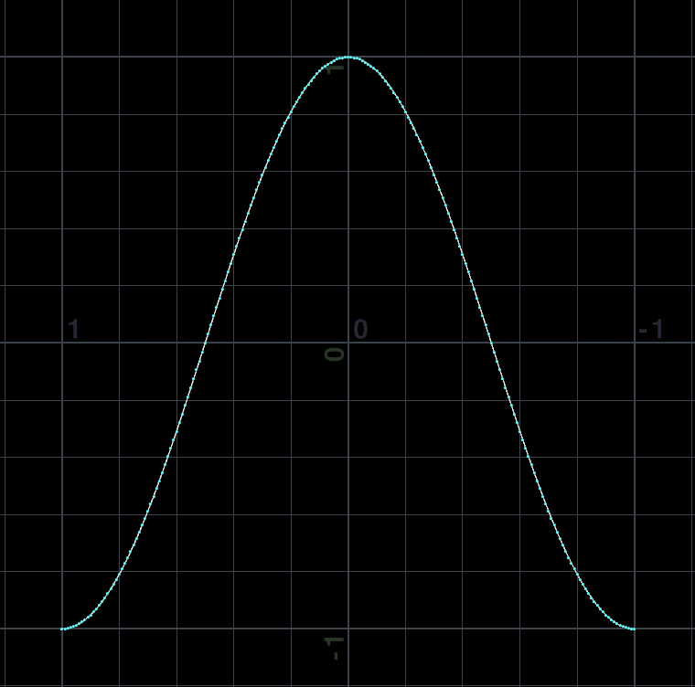 dot함수를 이용하여 음영이 표현했다. 그래프로 표현하면 위의 그림과 같다. 보다시피 -1 ~ 1 까지의 값을 갖는다.