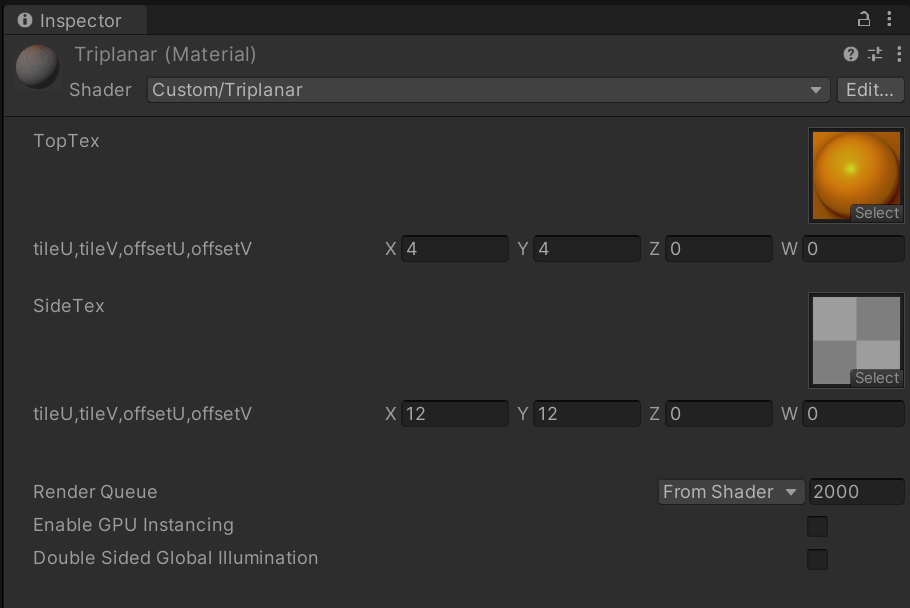 float4 sideTex = tex2D(_MainTex2, sideUV * _MainTex2UV.xy + _MainTex2UV.zw);
