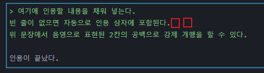 > 내용 형식으로 인용 상자를 작성할 수 있다. 빈 줄이 나오기 전까지의 내용이 인용 상자 안에 포함된다.