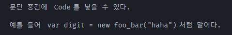 문단 작성 중간에 코드를 삽입해야 할 때가 있다. 정확히는 코정 폭 폰트를 표시해야 할 때다.