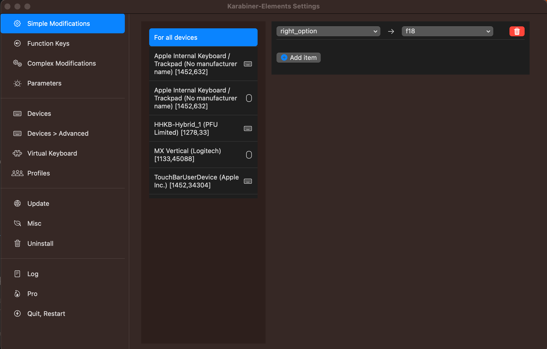 아! 그리고 Mac에서는 한/영 전환키를 다시 셋업해줄 필요가 있다. 따라서 https://karabiner-elements.pqrs.org/라는 어플로 다음과 같이 설정한다.