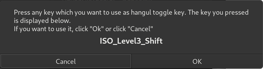 Alt_R이 나오기를 기대했지만 ISO_Level3_Shift가 나온다. 이것은 GNOME이 최신으로 업데이트되면서 바뀌어서 그렇다. 이것은 gnome-tweak 툴로 해결할 수 있다.