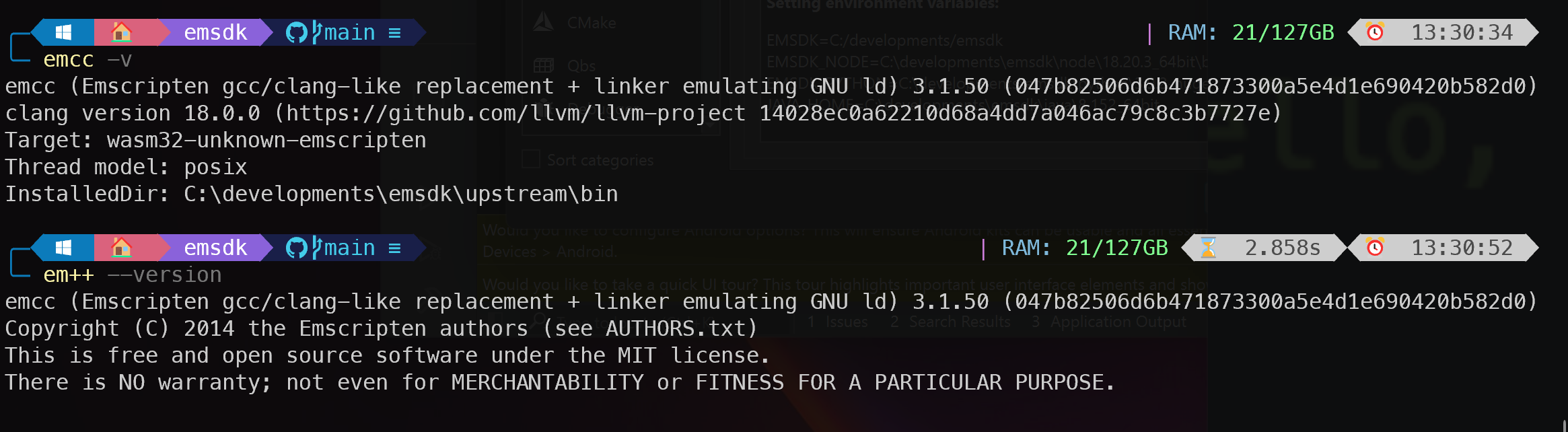 Note If you want to use your system’s Node.js instead of the emsdk’s, it may be node instead of nodejs, and you can adjust the NODE_JS attribute of your .emscripten file to point to it.